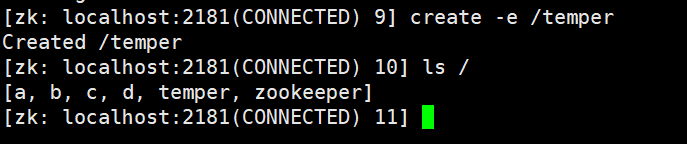 3 创建短暂节点,创建成功后,quit退出客户端,重新连接,短暂节点消失