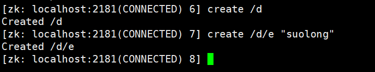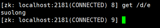 > 在d节点下,创建e节点,数据为"suolong"