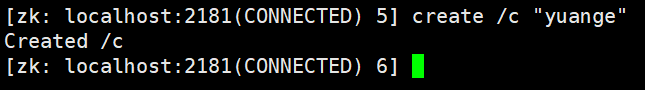 - 在根目录下,创建 c 节点,并保存数据 “yuange” 数据到节点上