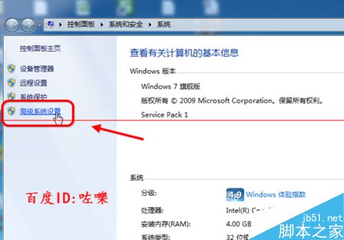 2、本图是win7系统的截图,如果是XP或03等系统是直接到第三步(点击高级系统设置菜单)