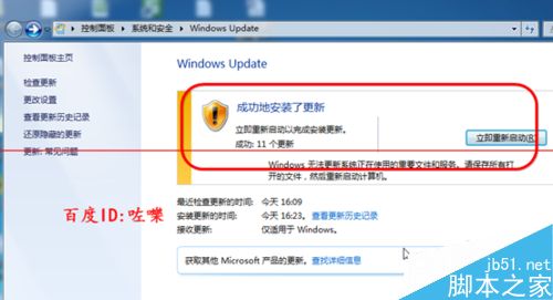 2、如图,安装好系统补丁之后。一般系统会自动提示要求重启。