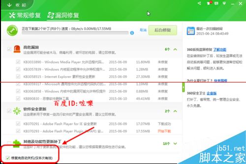 2、安全工具修复系统漏洞,360安全卫士,QQ管家等也有修复后自动关机或重启的任务。注意把这些设置取消