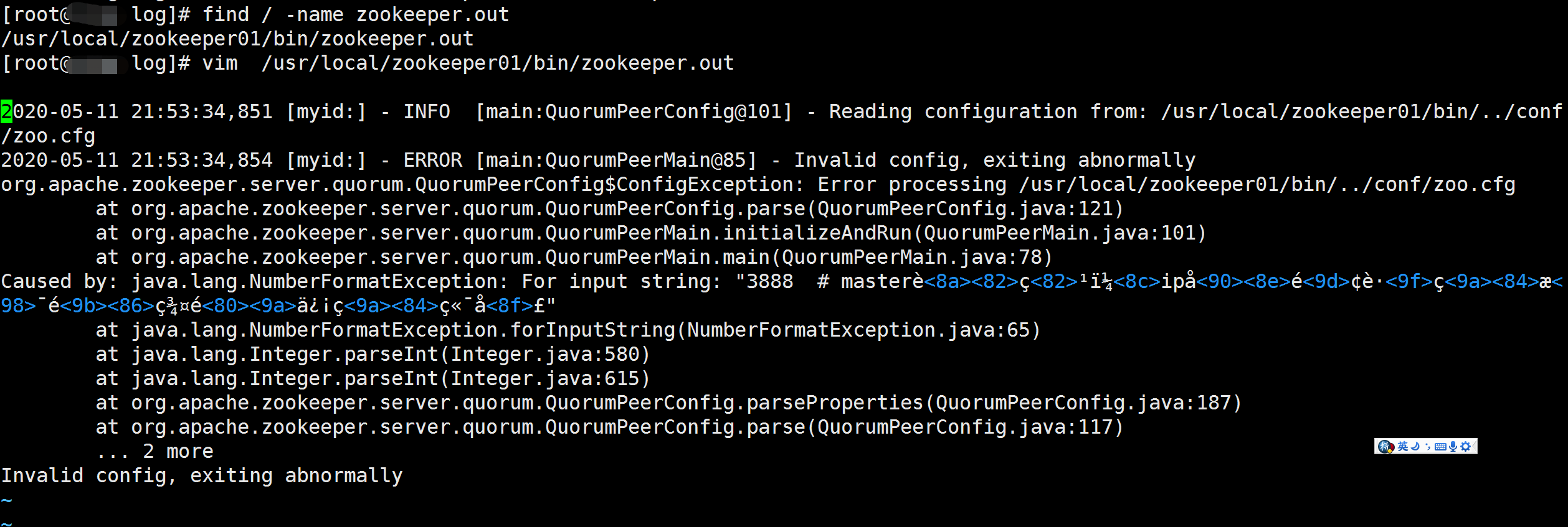 vim /usr/local/zookeeper01/bin/zookeeper.out