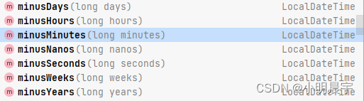 //当前时间的前一个月:LocalDateTime start= LocalDateTime.now().minusMonths(1);其它对应如下:
