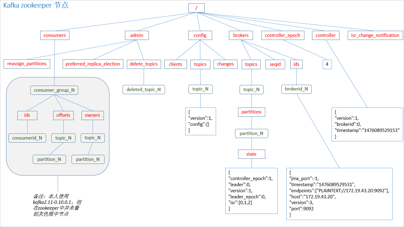 kafka 在 zookeeper 中的存储结构如下图所示:
