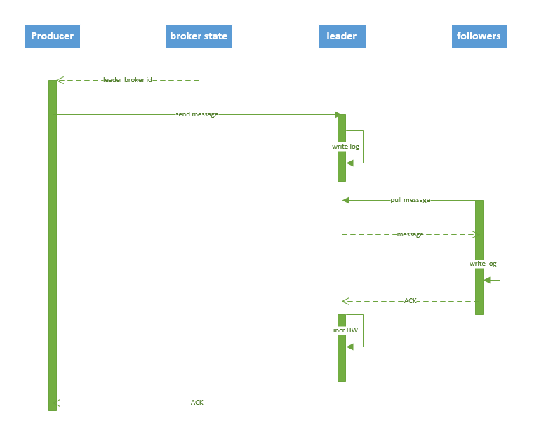 2. producer 将消息发送给该 leader