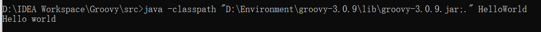 可以用java命令调用JVM运行groovy编译出来的HelloWorld.class文件: