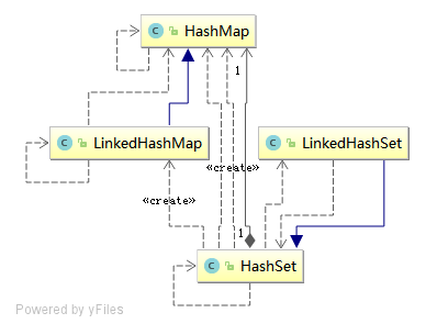 事实上,HashSet是由HashMap来实现的(没有看过源码的时候曾经一直直观的以为HashMap的key是HashSet来实现的,恰恰相反)。这里不展开叙述,只要看HashSet的构造方法和add方法就能理解了。