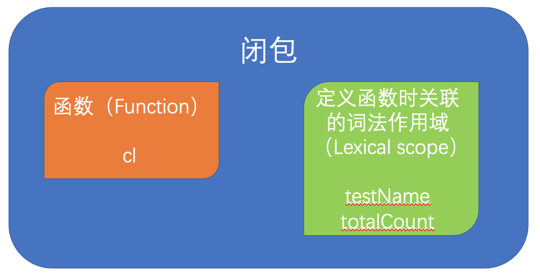 闭包是如何实现的?一个闭包定义了一个函数,以及该函数定义时的词法作用域,在该作用域中的所有变量的状态都会被保存下来。例如这里,闭包定义时的词法作用域中引用的变量testName,totalName。在我们再次调用闭包时,这些变量的状态会被恢复。如果我们再次调用cl(5)会发生什么?
