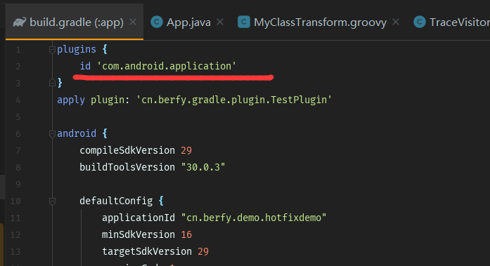 我们检测到这个Plugin就传递给MyClassTransform负责拦截App编译后的操作。