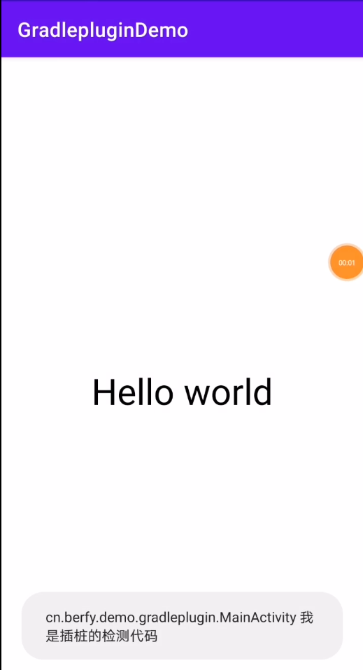 Toast.makeText(activity, MainActivity.class.getName() + " 我是插桩的检测代码", Toast.LENGTH_LONG).show();
