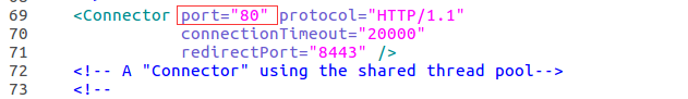 修改tomcat -->conf -->server.xml中第69行的端口