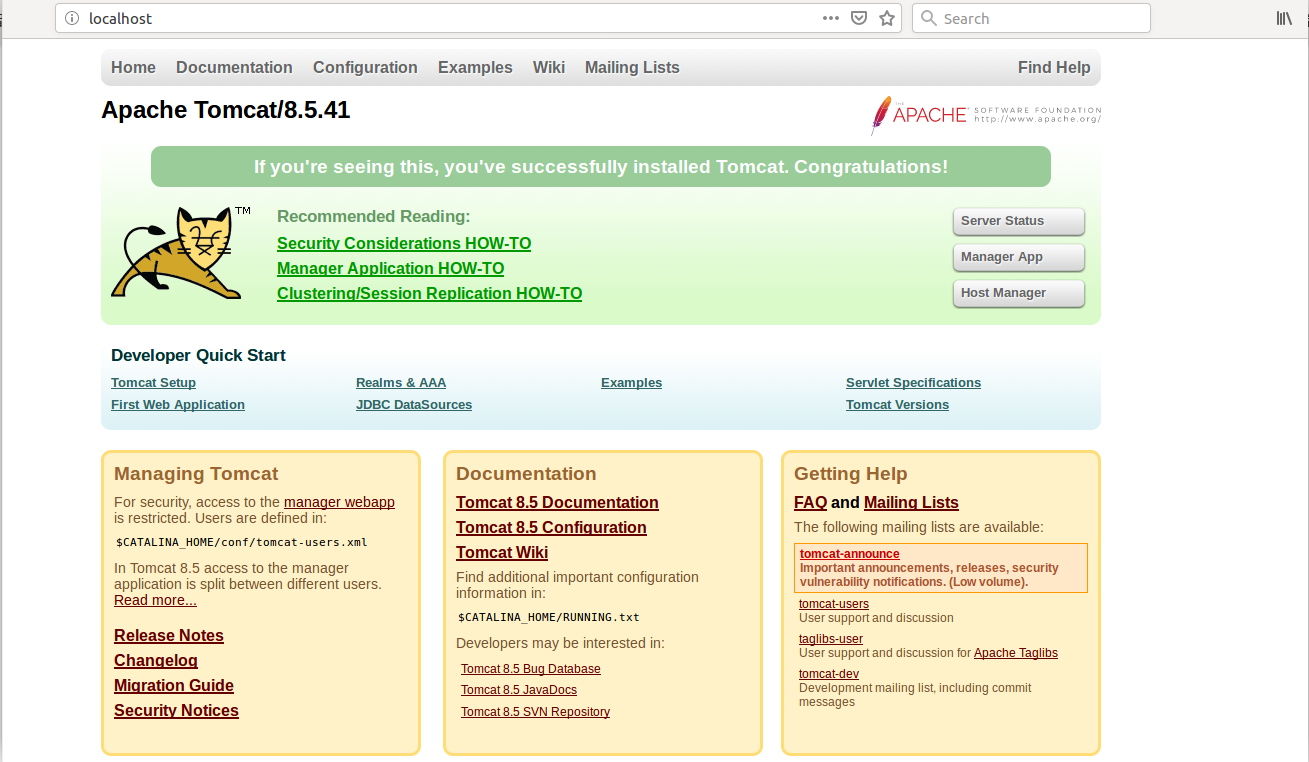 tar -zxvf apache-tomcat-8.5.41.tar.gz
