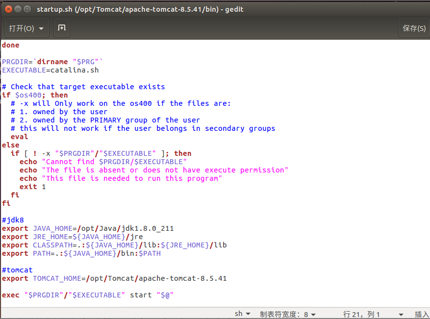 修改tomcat -->bin下的startup.sh和shutdown.sh文件
