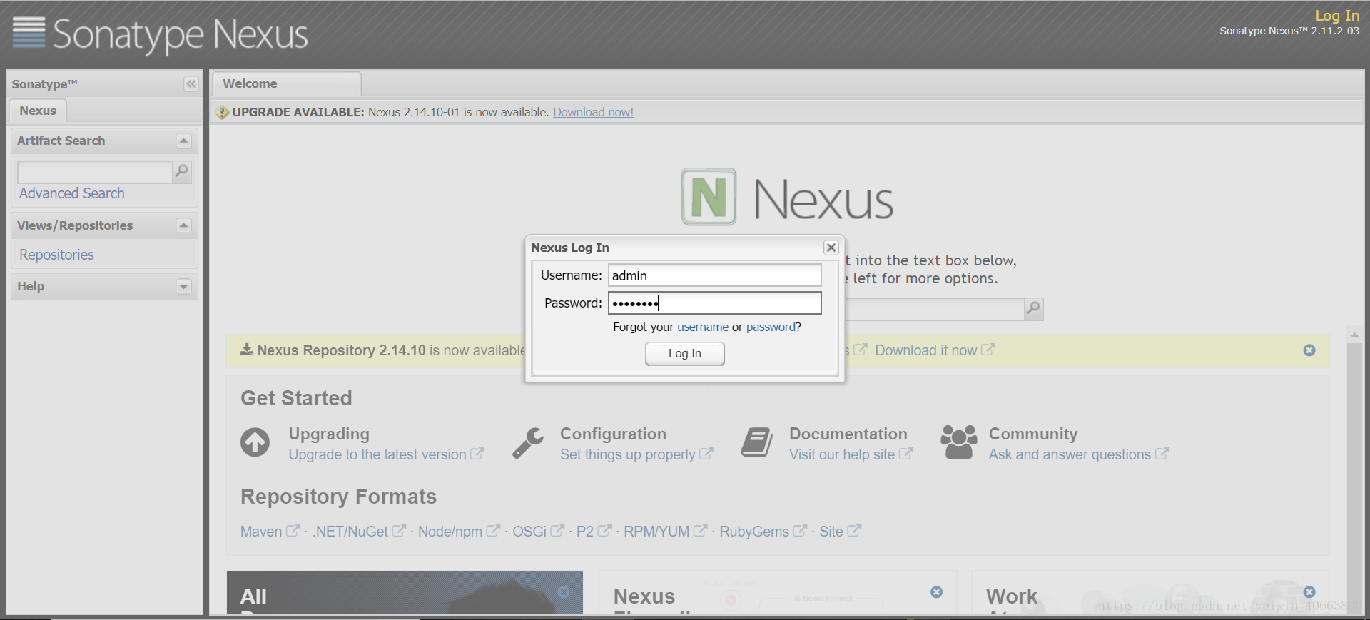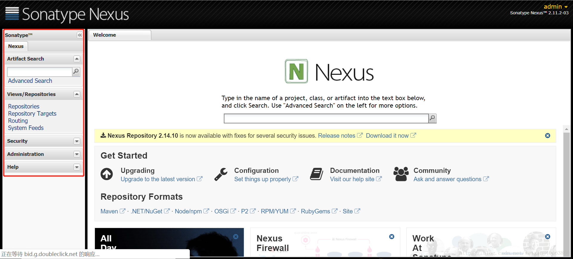 到此,Nexus 已安装完成,接下来是 Nexus 的配置