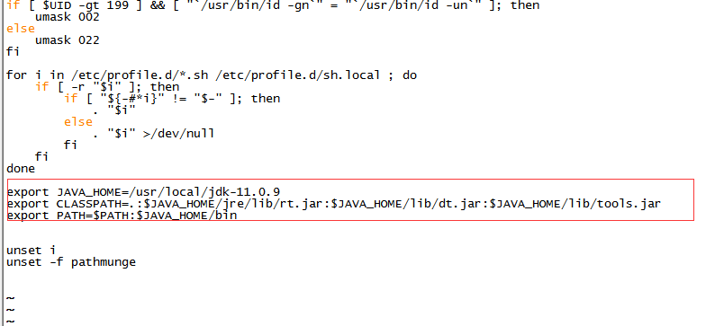 [root@localhost jdk-11.0.9]# vi /etc/profile