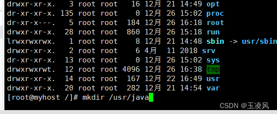 4、在usr目录下新建Java目录,然后将下载的JDK拷贝到这个新建的Java目录中创建目录命令:mkdir /usr/java