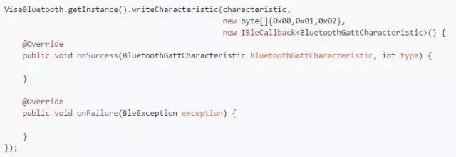 此处的数据 new byte[]{0x00,0x01,0x02} 为模拟数据,在使用时替换为真实数据即可,切记每次发送的数据必须在20个字节内,如果大于20字节可采用分包机制进行处理。