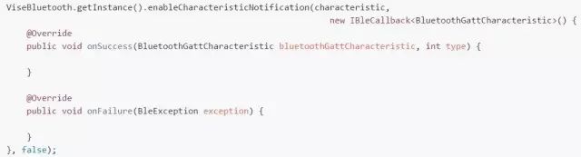 其中最后一个参数是设置该通知是否是指示器方式,指示器方式为有应答的通知方式,在传输时更为靠谱。如果在连接成功时已经知道该设备可通知的 UUID 并且已经设置成功,那么此处还可以如下设置: