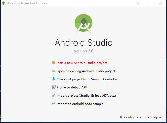 3.安装完成之后启动Android Studio,点击Start a new Android Studio project