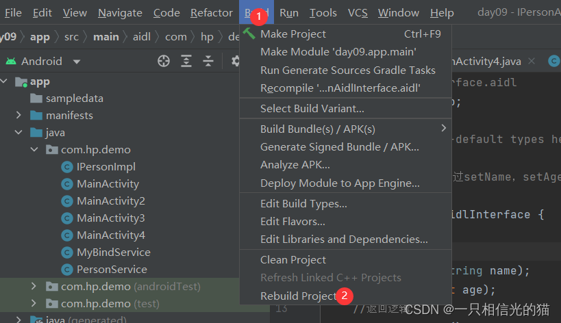 系统会自动生产文件夹和aidl文件