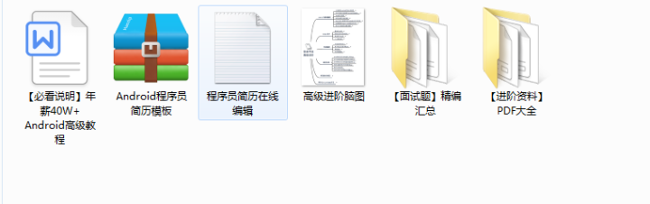 还有高级架构技术进阶脑图、Android开发面试专题资料,高级进阶架构资料 帮助大家学习提升进阶,也节省大家在网上搜索资料的时间来学习,也可以分享给身边好友一起学习。 领取地址: Android学习PDF+架构视频+最新面试文档+源码笔记