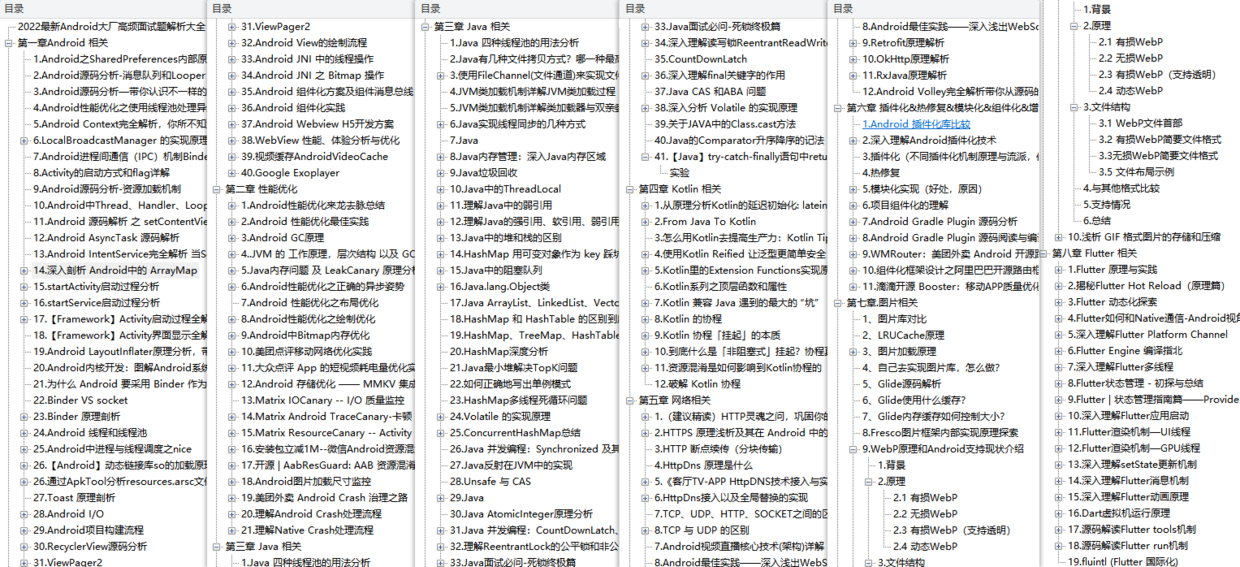 以上就是迷路巨人最近收集整理的关于2022最新Android面试题及答案整理(共计4176页PDF)包含腾讯、字节、百度、小米、阿里等大厂面试真题的全部内容,更多相关2022最新Android面试题及答案整理(共计4176页PDF)包含腾讯、字节、百度、小米、阿里等大厂面试真题内容请搜索靠谱客的其他文章。