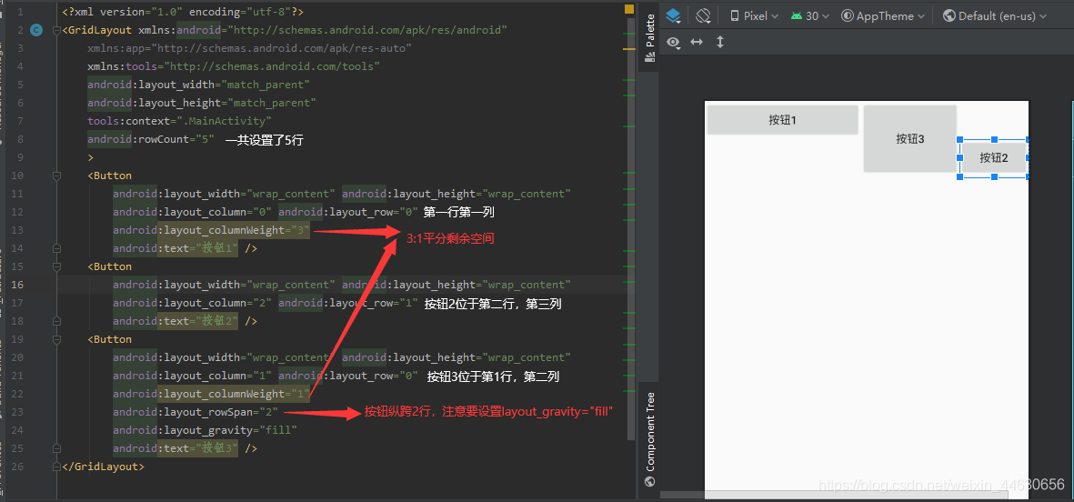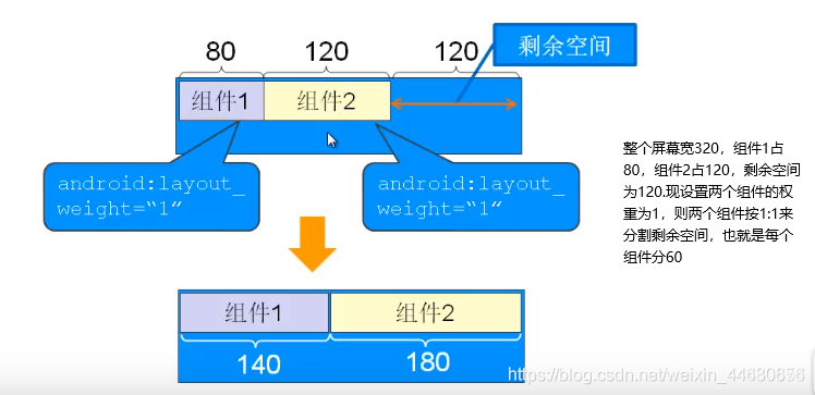 android:layout_weight | 为容器内的组件设置权重,表示当所有控件全部排列完毕后,该被设置的组件占父容器剩余空白部分的多少比重 |