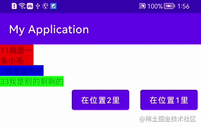 我在界面上设置了2个Placeholder。通过2个按钮,控制蓝色TextView处于在哪个PlaceHolder里。