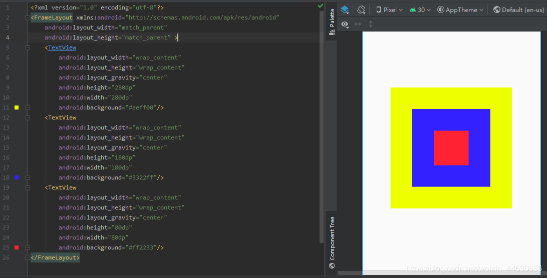 在activity_main.xml文件中用FrameLayout标签来定义帧布局管理器。