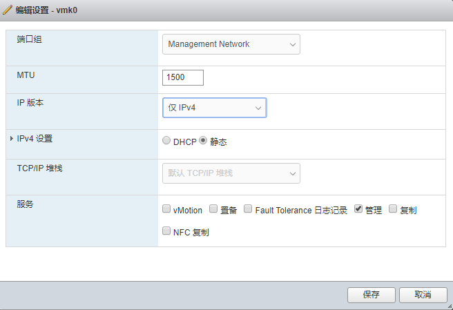 - TCP/IP堆栈:一共有三个选项(默认TCP/IP堆栈 、vMotion、 置备堆栈),如果选择 vMotion 或置备堆栈,则可用服务中只能使用 vMotion 或置备流量,而如果设置了置备 TCP/IP 堆栈,将可以使用所有可用服务。
