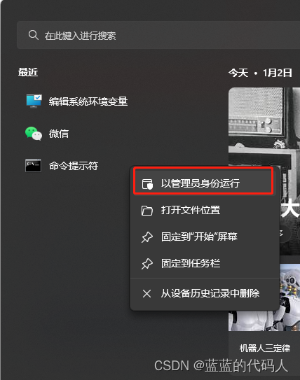 注意需要cmd管理员模式。
