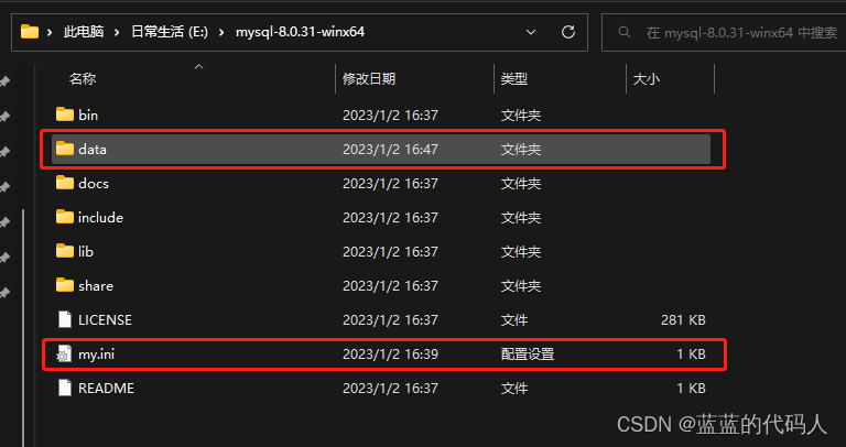 data和my.ini是没有的。