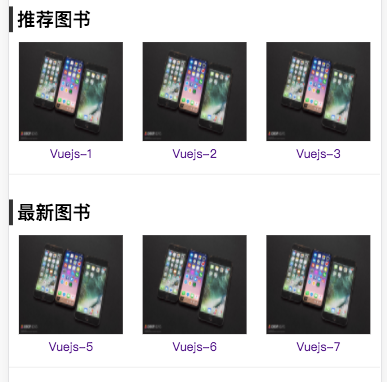 图片显示的 '推荐图书' 和 '最新图书' 的列表展示是一样的,开始可以用重复的代码把先写好的 '推荐图书' 的代码复制一份就可以轻轻松松实现 '最新图书' 页面