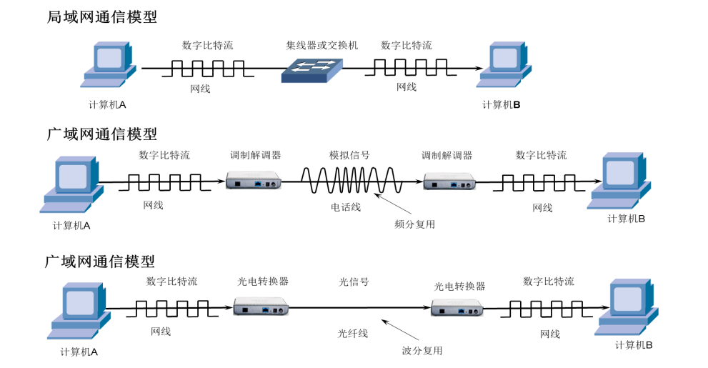 数据根据字符集转化为0 1二进制类型,发的时候变为电信号,光信号。电信号分为数字信号和模拟信号。对面收到之后转化为1,0,然后通过字符集转化为数据。