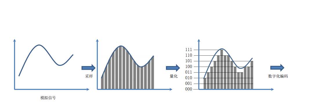 模拟信号进行采样之后进行量化,这样再进行数字化编码