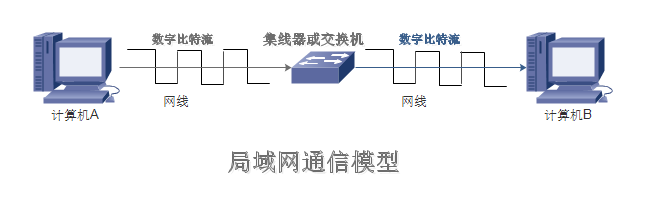 计算机A将要传输的信息变成数字信号(即比特流)通过集线器或交换机发送给计算机B,这个过程不需要对数字信号进行转换。