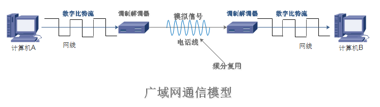 为了对计算机传输的信号进行长距离传输,需要把传输的数字信号转换成模拟信号或光信号。