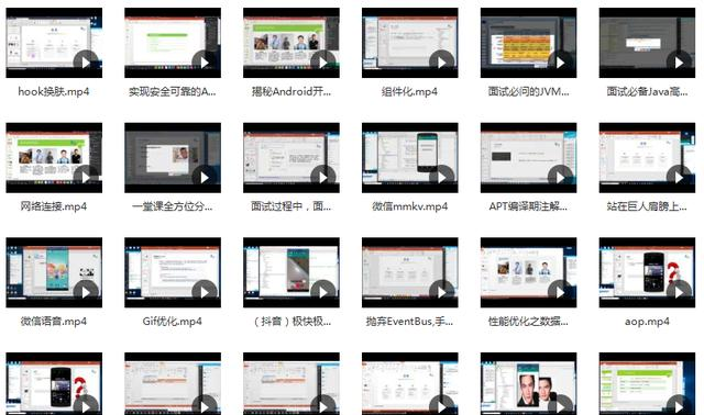 泛型原理、反射原理、Java虚拟机原理、线程池原理、注解原理、序列化原理、Activity知识体系(Activity的生命周期、Activity的任务栈、Activity的启动模式、View源码、Fragment内核相关、service原理等)、代码框架结构优化(数据结构、排序算法、设计模式)、APP性能优化(用户体验优化、适配、代码调优)、热修复、热升级、Hook技术、IOC架构设计NDK(c编程、C++、JNI、LINUX)、MVC、MVP、MVVM微信小程序、Hybrid、Flutter