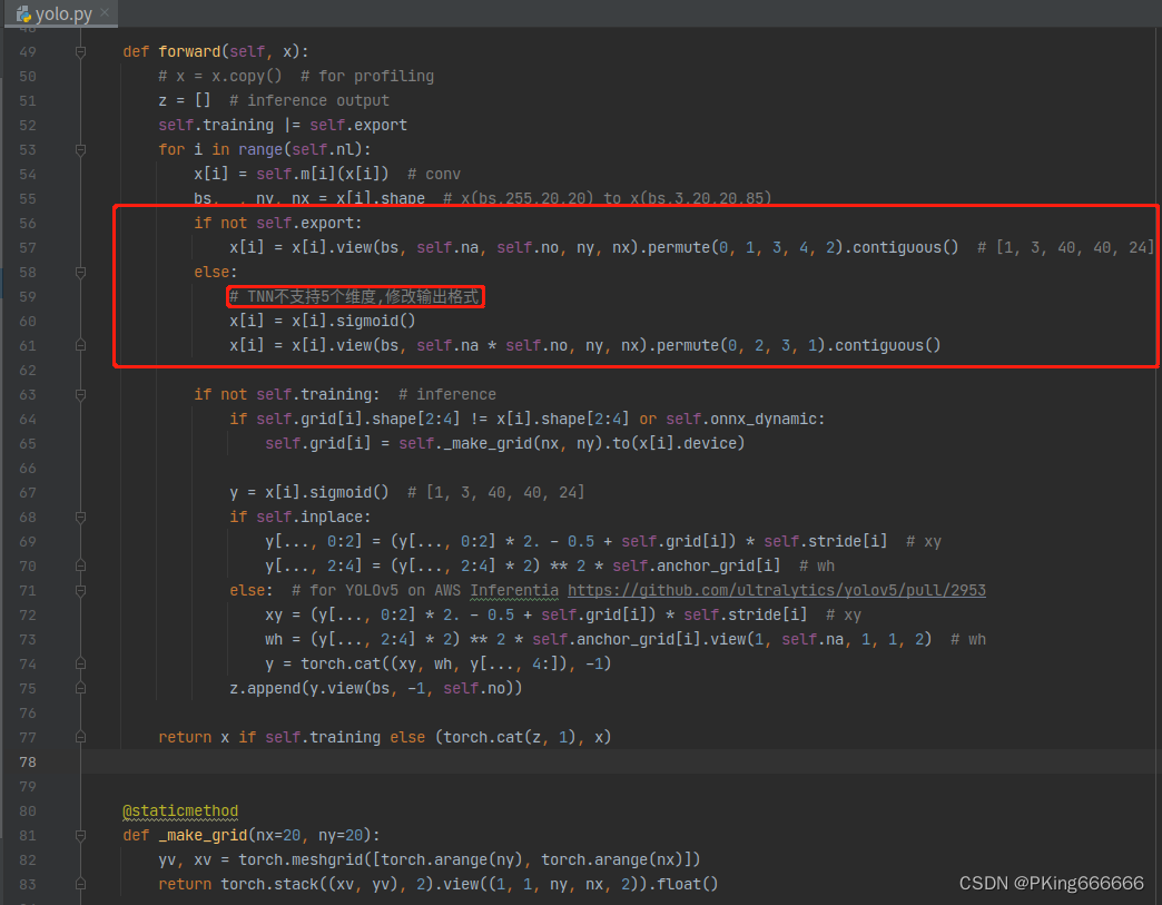 如果你是直接使用官方YOLOv5代码转换TNN模型,部署TNN时会出现这个错误Permute param got wrong size,这是因为TNN最多支持4个维度计算,而YOLOv5在输出时采用了5个维度。你需要修改model/yolo.py文件