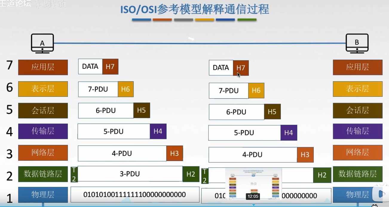 从左向右,从左边的7层传到1层,在这过程中给每一层加上头部,直至数据链路层的时候要加上头部和尾部,物理层是傻瓜式传输;在右边又从下到上进行传输,挨个给左边加上的进行拆除,当然在数据链路层要拆除两部分