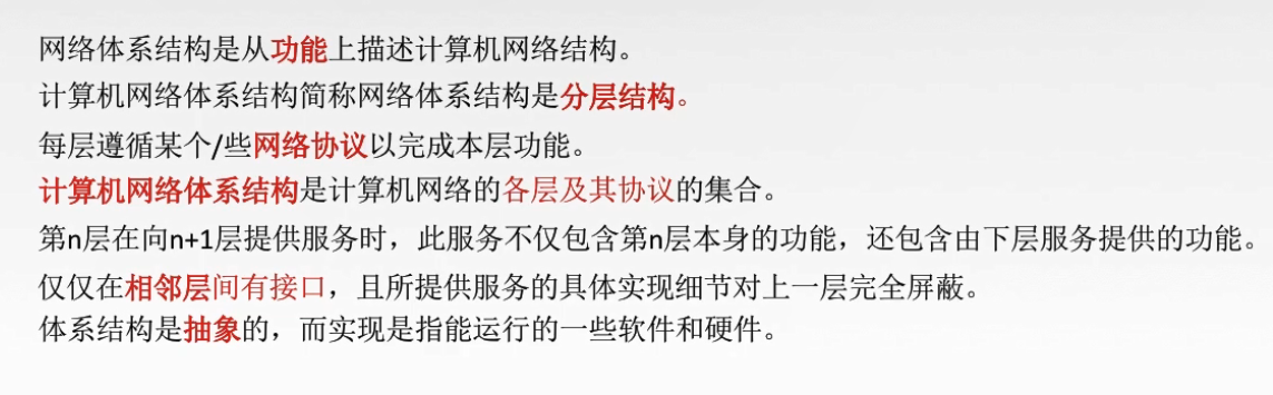 (1)计算机网络体系结构简称网络体系结构,是分层结构,从功能上描述,是各层协议的集合