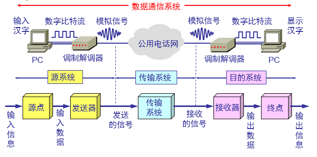 (2)频带传输:指把数字信号调制成模拟信号后再发送和传输,到达接收端再把音频信号解调成原来的数字信号.