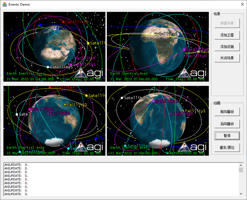 示例对话框界面的那个三维视窗控件,查了半天没有找到其与STK当前场景的关系,猜测STK应用会自动搜索本进程空间中的视窗控件,包括二维和三维视窗,然后内部建立联系进行显示控制和更新,为此,进行如下简单测试。