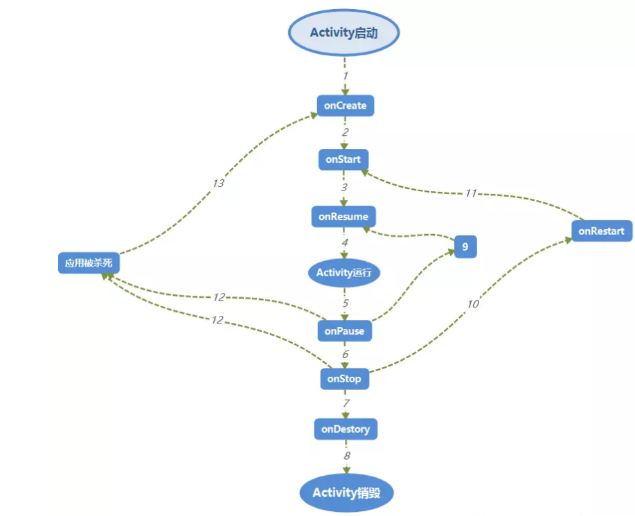 Activity启动–>onCreate()–>onStart()–>onResume()