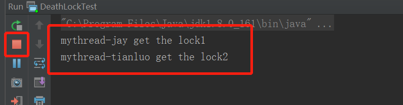 mythread-jay线程等待这个锁“0x00000000d61ae3d0”,这个锁是由mythread-tianluo 线程持有。