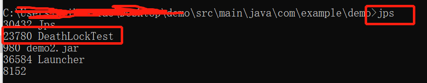 通过使用 jps 命令获取需要监控的进程的pid,我们找到了 23780DeathLockTest
