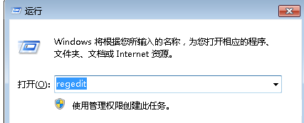 1、首先在win7系统的开始菜单中打开运行窗口,输入“regedit”,回车打开注册表;