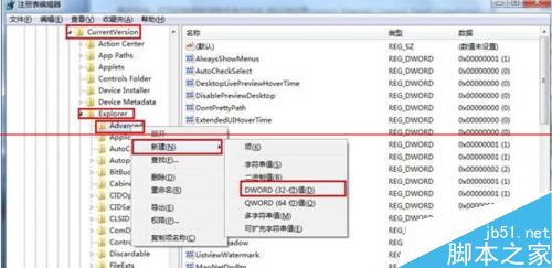 3、然后单击鼠标右键新建一个“DWORD(32-位)值”;