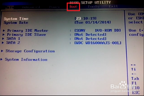 进入了BIOS界面后,按方向键左右选择BOOT选项后出现一个“Boot Settings”菜单。